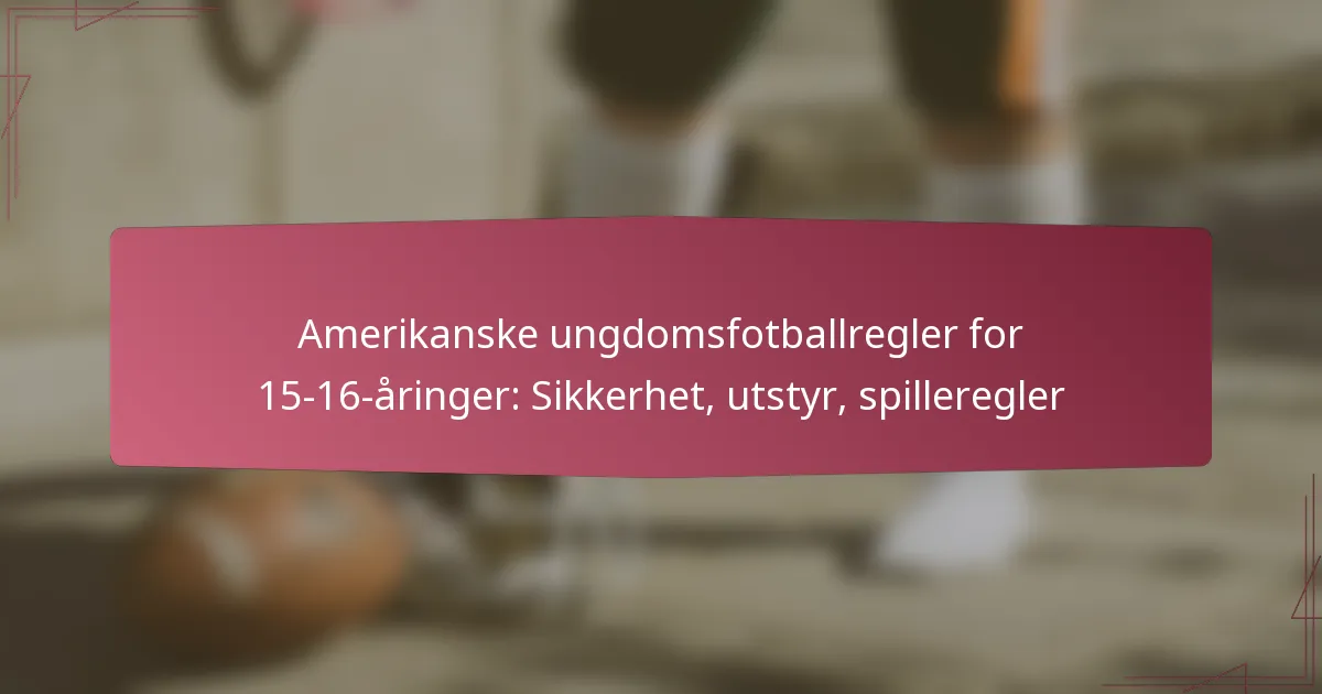 Nøkkelreglene for amerikansk ungdomsfotball for 11-12-åringer prioriterer sikkerhet, struktur og glede, og dekker aspekter som spillets varighet, spillersikkerhet og poenggiving. Treningene bør være utformet for å forbedre ferdighetsutviklingen samtidig som de fremmer lagarbeid og idrettsånd, og sikrer et morsomt miljø for unge idrettsutøvere. Spillformatet inkluderer modifiserte regler for å fremme sikkerhet og konkurranseånd, slik at spillerne kan utvikle sine ferdigheter i et støttende miljø.
