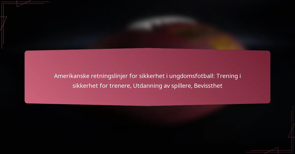 De viktigste sikkerhetsretningslinjene for amerikansk ungdomsfotball fokuserer på å beskytte spillerne gjennom riktig utstyr, begrense treningens varighet og etablere klare protokoller for skadehåndtering. Disse retningslinjene har som mål å skape et tryggere miljø for unge idrettsutøvere samtidig som de fremmer bevissthet og utdanning blant foreldre og trenere.
