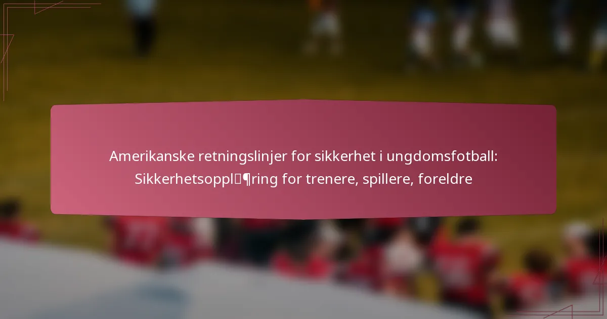 De viktigste sikkerhetsretningslinjene for amerikansk ungdomsfotball fokuserer på å beskytte spillerne gjennom riktig trening, utstyr og bevissthet om risikoer. Trenere, foreldre og spillere må samarbeide for å implementere disse retningslinjene effektivt for å sikre et trygt spillemiljø.